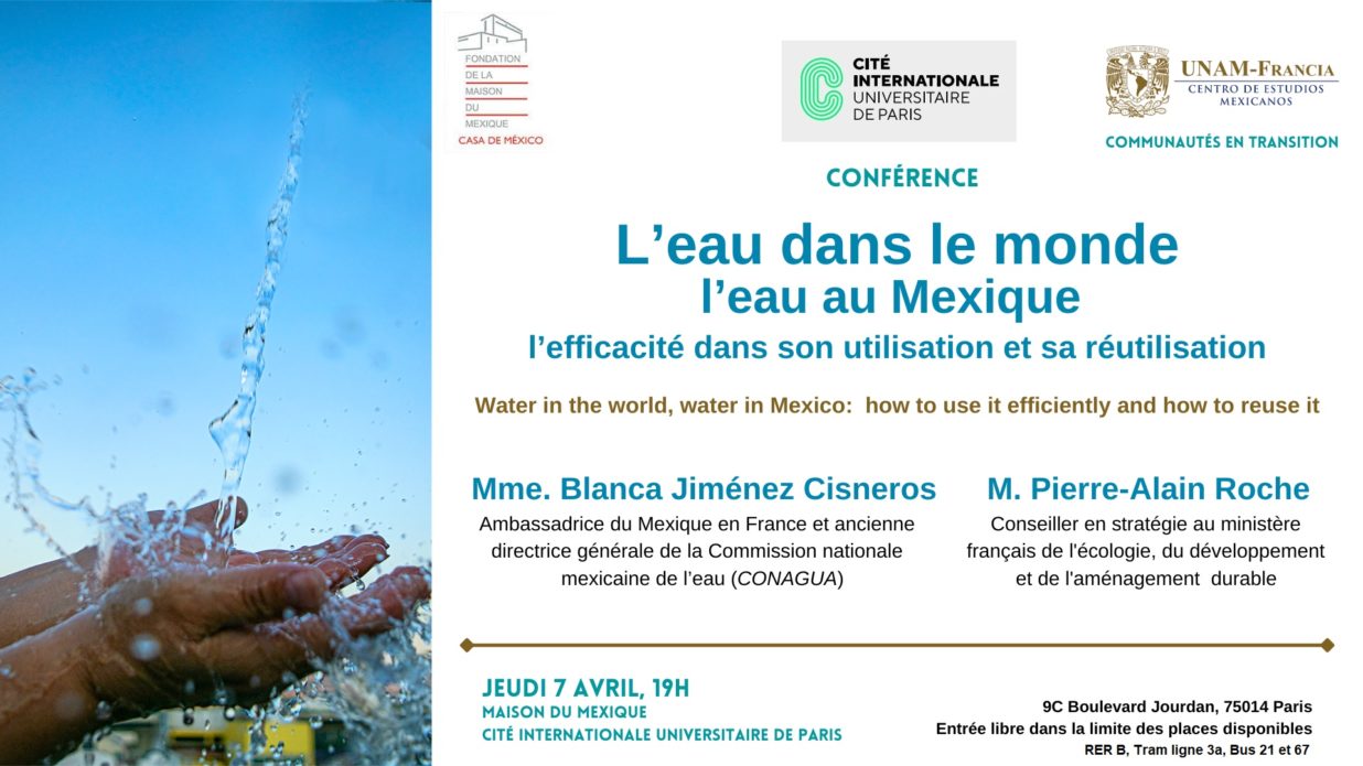 Le jeudi 7 avril à 19h00, la Fondation de la Maison du Mexique organise une conférence intitulée “L’eau dans le monde, l’eau au Mexique”. -