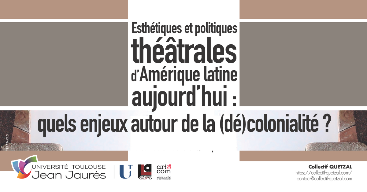 Du 3 au 5 avril 2024, le collectif QUETZAL organise un colloque intitulé « Esthétiques et politiques théâtrales d’Amérique latine : quels enjeux autour de la (dé)colonialité ? ». -