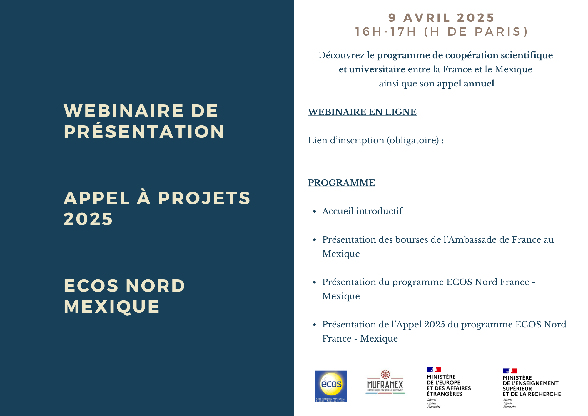 La coopération scientifique franco-mexicaine vous intéresse ? Le 9 avril 2025, participez au webinaire de présentation du programme ECOS Nord Mexique ! -