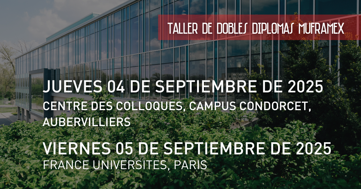 MUFRAMEX organiza, en colaboración con instituciones mexicanas y francesas, un evento híbrido de dobles titulaciones franco-mexicanas, los días 4 y 5 de septiembre de 2025 en París.