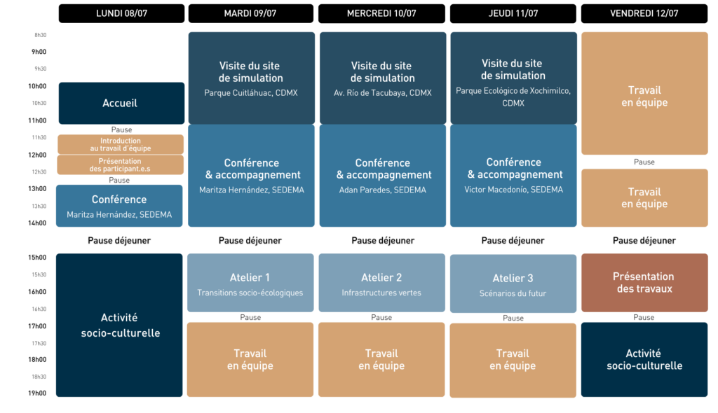 Cette école thématique a pour objectif de contribuer à la formation interdisciplinaire et internationale sur les concepts, les méthodes et les outils des transitions urbaines socio-écologiques à partir des stratégies de gestion, de planification et d’anticipation de l’infrastructure verte des villes, avec des cas appliqués à la ville de Mexico.